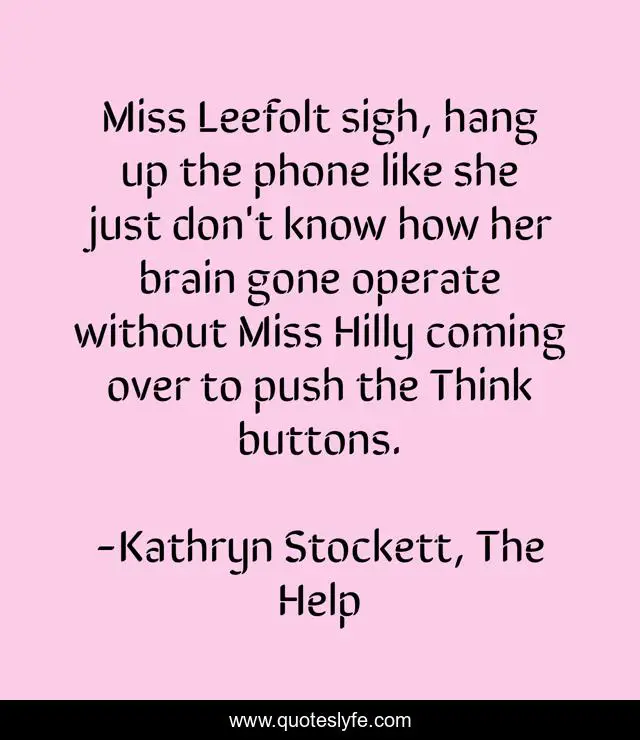 "Kathryn Stockett, The Help Quotes." Quoteslyfe.com, 2025. Mon. 08 Dec. 2025. <https://www.quoteslyfe.com/quote/Miss-Leefolt-sigh-hang-up-the-phone-103190>.