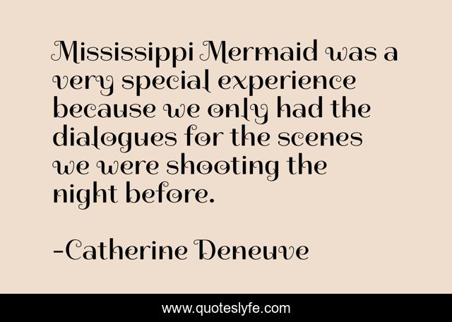 This page presents the quote "Mississippi Mermaid was a very special experience because we only had the dialogues for the scenes we were shooting the night before.". Author of this quote is Catherine Deneuve. This quote is about shooting, special, night,.