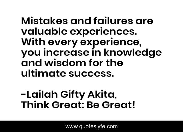 "Lailah Gifty Akita, Think Great: Be Great! Quotes." Quoteslyfe.com, 2025. Fri. 05 Dec. 2025. <https://www.quoteslyfe.com/quote/Mistakes-and-failures-are-valuable-experiences-With-34586>.