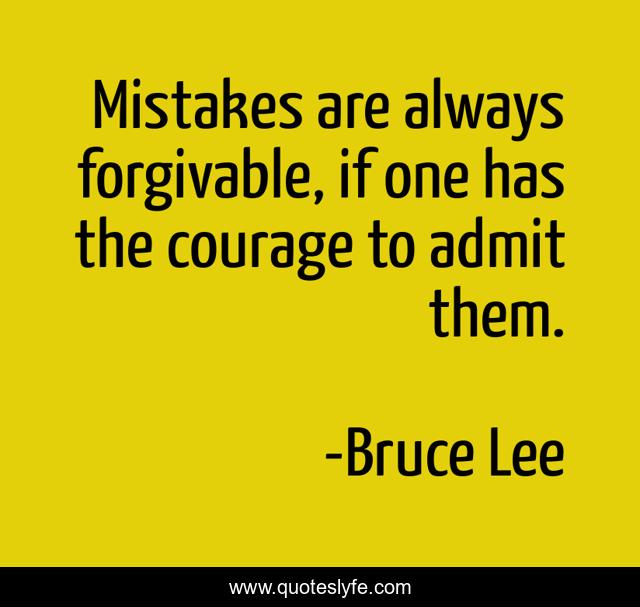 This page presents the quote "Mistakes are always forgivable, if one has the courage to admit them.". Author of this quote is Bruce Lee. This quote is about admit, mistakes, forgiveness,.