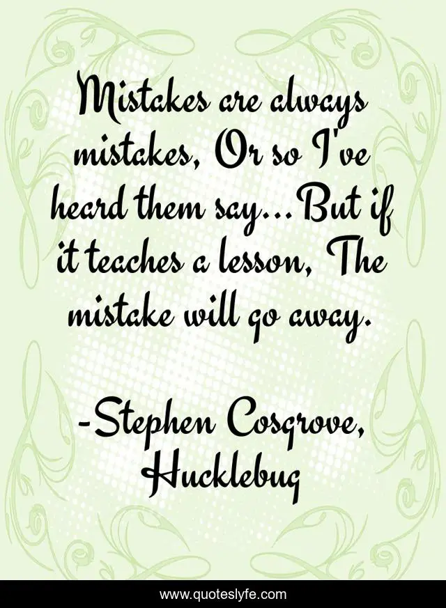 "Stephen Cosgrove, Hucklebug Quotes." Quoteslyfe.com, 2025. Sat. 06 Dec. 2025. <https://www.quoteslyfe.com/quote/Mistakes-are-always-mistakes-Or-so-I-249242>.