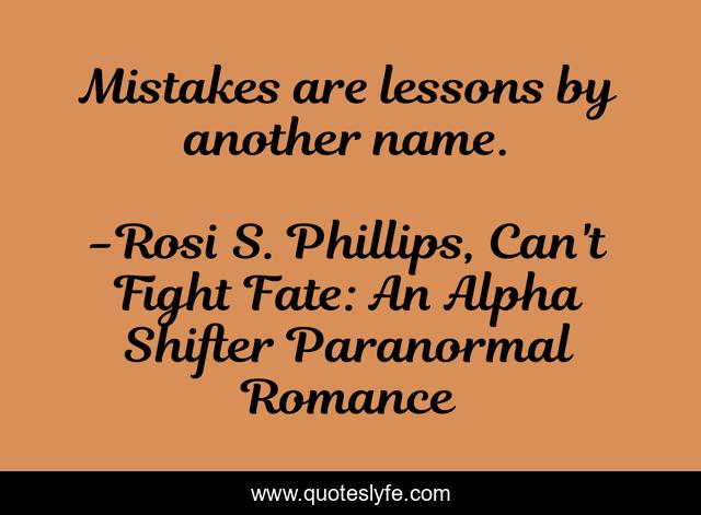 "Rosi S. Phillips, Can't Fight Fate: An Alpha Shifter Paranormal Romance Quotes." Quoteslyfe.com, 2025. Fri. 05 Dec. 2025. <https://www.quoteslyfe.com/quote/Mistakes-are-lessons-by-another-name-201391>.