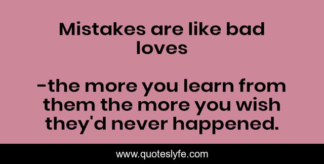 This page presents the quote "Mistakes are like bad loves". Author of this quote is the more you learn from them the more you wish they'd never happened.. .