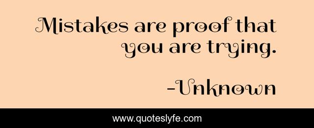 This page presents the quote "Mistakes are proof that you are trying.". Author of this quote is Unknown. This quote is about mistakes, trying,.