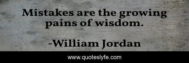 This page presents the quote "Mistakes are the growing pains of wisdom.". Author of this quote is William Jordan. This quote is about mistakes, growth, wisdom,.
