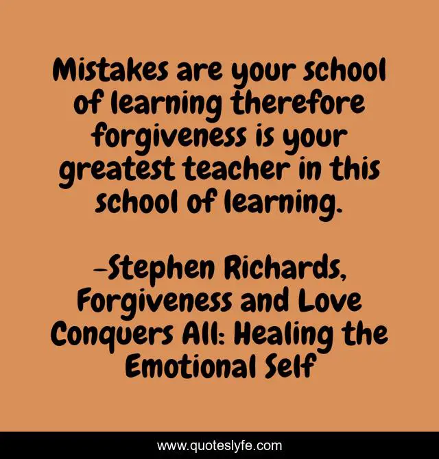 "Stephen Richards, Forgiveness and Love Conquers All: Healing the Emotional Self Quotes." Quoteslyfe.com, 2025. Sat. 06 Dec. 2025. <https://www.quoteslyfe.com/quote/Mistakes-are-your-school-of-learning-therefore-121619>.