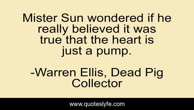 "Warren Ellis, Dead Pig Collector Quotes." Quoteslyfe.com, 2025. Fri. 05 Dec. 2025. <https://www.quoteslyfe.com/quote/Mister-Sun-wondered-if-he-really-believed-80724>.