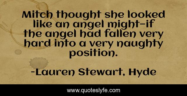 This page presents the quote "Mitch thought she looked like an angel might—if the angel had fallen very hard into a very naughty position.". Author of this quote is Lauren Stewart, Hyde. This quote is about position, angel,.