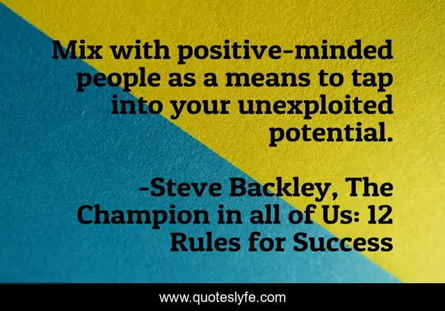 "Steve Backley, The Champion in all of Us: 12 Rules for Success Quotes." Quoteslyfe.com, 2025. Tue. 09 Dec. 2025. <https://www.quoteslyfe.com/quote/Mix-with-positive-minded-people-as-a-32438>.
