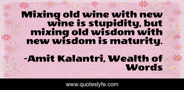 "Amit Kalantri, Wealth of Words Quotes." Quoteslyfe.com, 2025. Sat. 06 Dec. 2025. <https://www.quoteslyfe.com/quote/Mixing-old-wine-with-new-wine-is-23166>.
