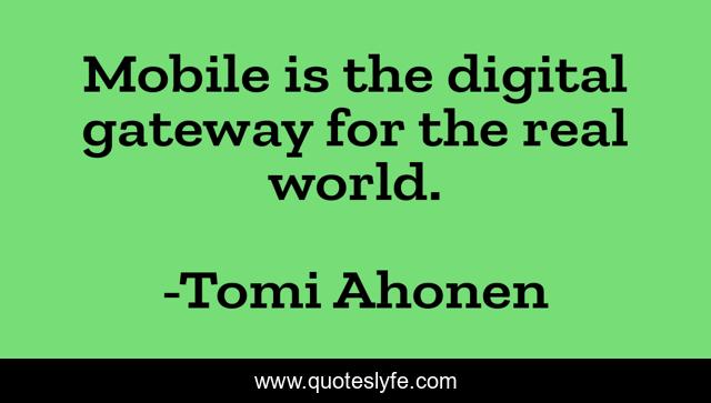 This page presents the quote "Mobile is the digital gateway for the real world.". Author of this quote is Tomi Ahonen. This quote is about mobile, communication, digital-age,.