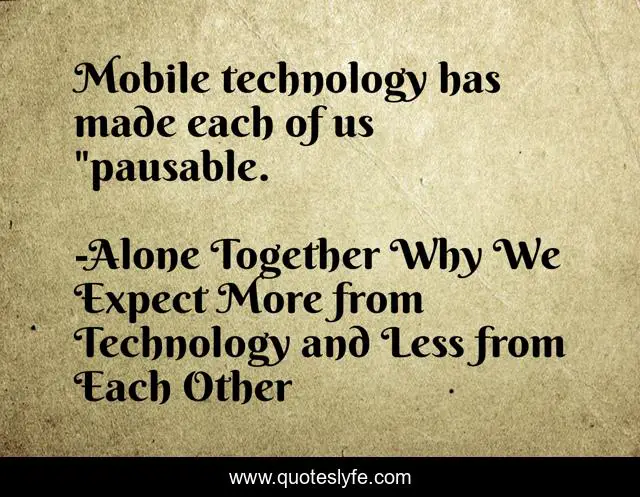 "Alone Together Why We Expect More from Technology and Less from Each Other Quotes." Quoteslyfe.com, 2025. Sat. 06 Dec. 2025. <https://www.quoteslyfe.com/quote/Mobile-technology-has-made-each-of-us-103586>.