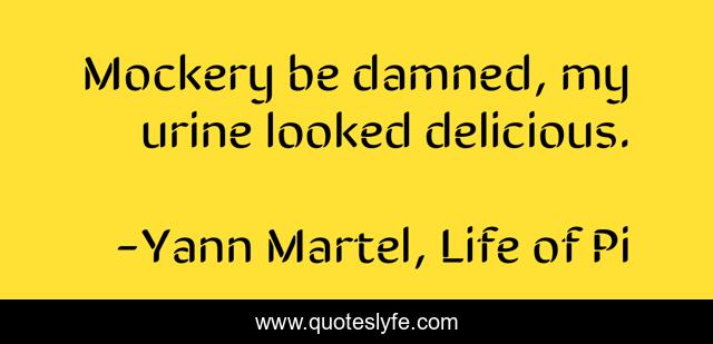 "Yann Martel, Life of Pi Quotes." Quoteslyfe.com, 2025. Sat. 06 Dec. 2025. <https://www.quoteslyfe.com/quote/Mockery-be-damned-my-urine-looked-delicious-196234>.