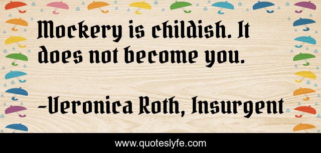 This page presents the quote "Mockery is childish. It does not become you.". Author of this quote is Veronica Roth, Insurgent. This quote is about originality, enthusiasm, life, inspirational, self-esteem,.