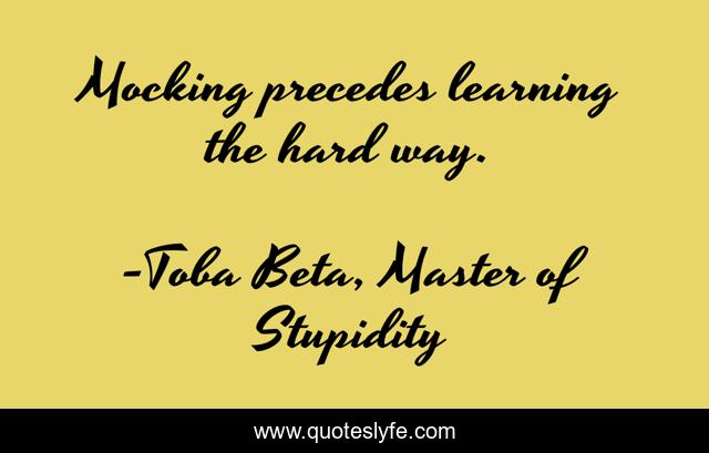 "Toba Beta, Master of Stupidity Quotes." Quoteslyfe.com, 2025. Fri. 05 Dec. 2025. <https://www.quoteslyfe.com/quote/Mocking-precedes-learning-the-hard-way-116751>.