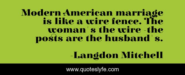 This page presents the quote "Modern American marriage is like a wire fence. The woman's the wire -the posts are the husband's.". Author of this quote is Langdon Mitchell. .