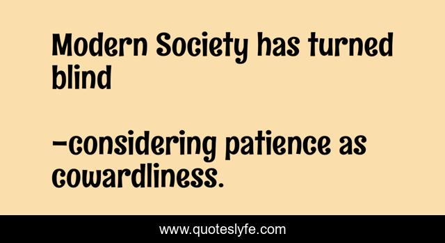 This page presents the quote "Modern Society has turned blind". Author of this quote is considering patience as cowardliness.. .