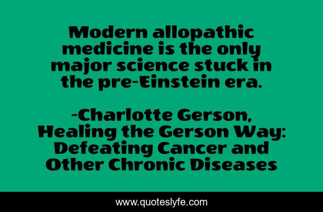 "Charlotte Gerson, Healing the Gerson Way: Defeating Cancer and Other Chronic Diseases Quotes." Quoteslyfe.com, 2025. Mon. 08 Dec. 2025. <https://www.quoteslyfe.com/quote/Modern-allopathic-medicine-is-the-only-major-243184>.