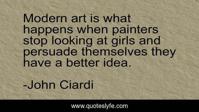 This page presents the quote "Modern art is what happens when painters stop looking at girls and persuade themselves they have a better idea.". Author of this quote is John Ciardi. This quote is about painters, painting,.