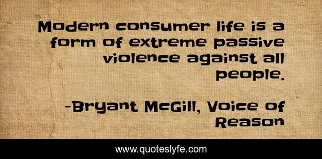 This page presents the quote "Modern consumer life is a form of extreme passive violence against all people.". Author of this quote is Bryant McGill, Voice of Reason. This quote is about violence, consumer, modern-life,.