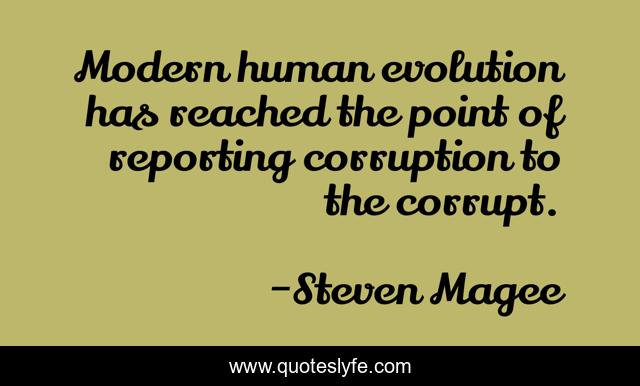 This page presents the quote "Modern human evolution has reached the point of reporting corruption to the corrupt.". Author of this quote is Steven Magee. This quote is about evolution, modern, point, reporting, human, corrupt, reached, corruption,.