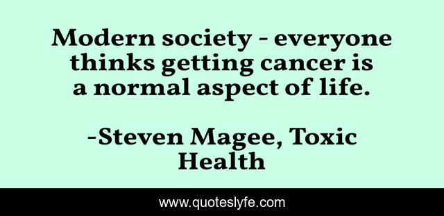 This page presents the quote "Modern society - everyone thinks getting cancer is a normal aspect of life.". Author of this quote is Steven Magee, Toxic Health. This quote is about life, everyone, aspect, cancer, getting, modern, society, normal, thinks,.