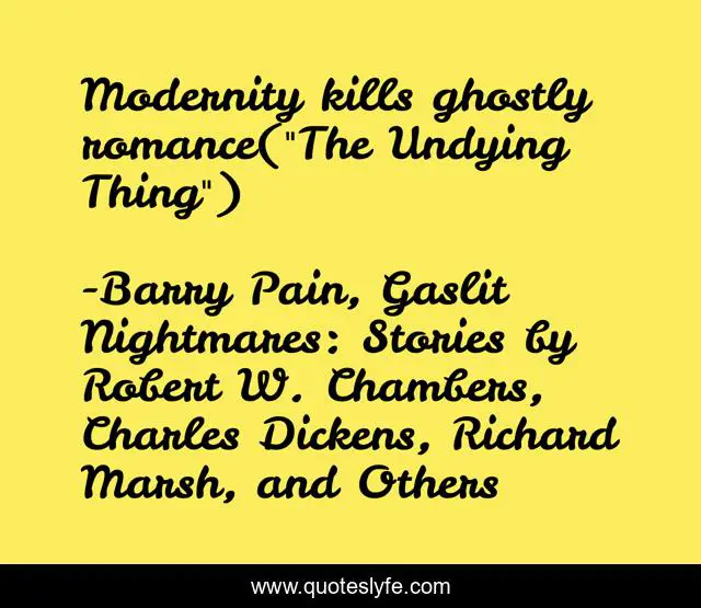 "Barry Pain, Gaslit Nightmares: Stories by Robert W. Chambers, Charles Dickens, Richard Marsh, and Others Quotes." Quoteslyfe.com, 2025. Mon. 08 Dec. 2025. <https://www.quoteslyfe.com/quote/Modernity-kills-ghostly-romance-The-Undying-Thing-132482>.