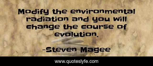 This page presents the quote "Modify the environmental radiation and you will change the course of evolution.". Author of this quote is Steven Magee. This quote is about environmental-change, direction, evolutionary-process, environmental, modify, evolutionary-enlightenment, evolutionary-biology, course, environmental-degradation,.
