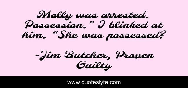 "Jim Butcher, Proven Guilty Quotes." Quoteslyfe.com, 2025. Mon. 08 Dec. 2025. <https://www.quoteslyfe.com/quote/Molly-was-arrested-Possession-I-blinked-at-89909>.