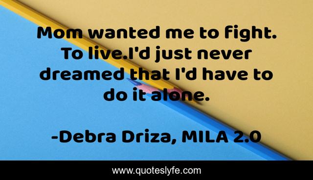 This page presents the quote "Mom wanted me to fight. To live.I'd just never dreamed that I'd have to do it alone.". Author of this quote is Debra Driza, MILA 2.0. .