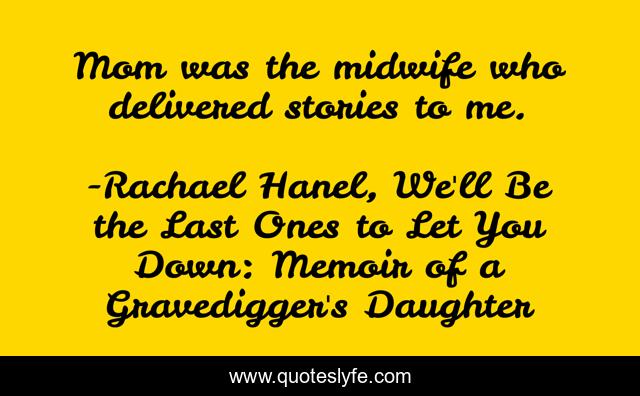 "Rachael Hanel, We'll Be the Last Ones to Let You Down: Memoir of a Gravedigger's Daughter Quotes." Quoteslyfe.com, 2025. Sun. 07 Dec. 2025. <https://www.quoteslyfe.com/quote/Mom-was-the-midwife-who-delivered-stories-200019>.