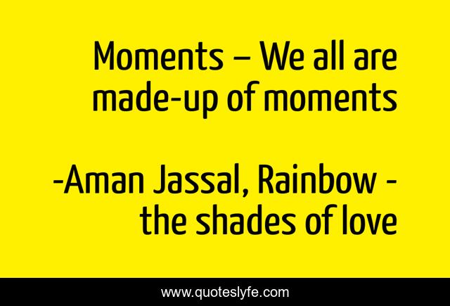 "Aman Jassal, Rainbow - the shades of love Quotes." Quoteslyfe.com, 2025. Fri. 05 Dec. 2025. <https://www.quoteslyfe.com/quote/Moments-We-all-are-made-up-of-245834>.