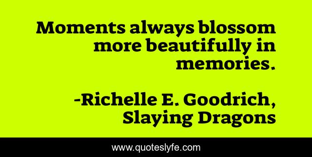 "Richelle E. Goodrich, Slaying Dragons Quotes." Quoteslyfe.com, 2025. Mon. 08 Dec. 2025. <https://www.quoteslyfe.com/quote/Moments-always-blossom-more-beautifully-in-memories-164362>.
