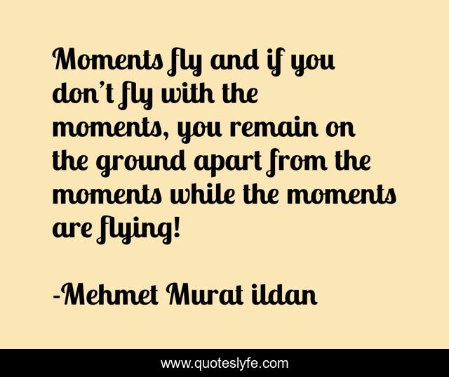 This page presents the quote "Moments fly and if you don’t fly with the moments, you remain on the ground apart from the moments while the moments are flying!". Author of this quote is Mehmet Murat ildan. This quote is about mehmet-murat-ildan, ildan-wise-sayings, turkish, ildan-wisdom, turkish-playwrights, turkish-wisdom-words, moments, moment, turkish-authors,.