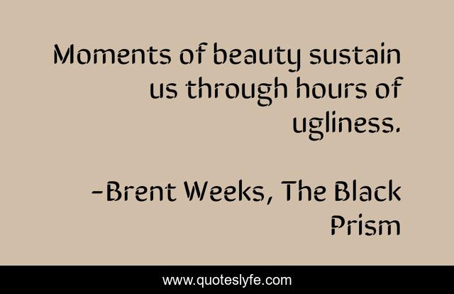 "Brent Weeks, The Black Prism Quotes." Quoteslyfe.com, 2025. Tue. 09 Dec. 2025. <https://www.quoteslyfe.com/quote/Moments-of-beauty-sustain-us-through-hours-60578>.