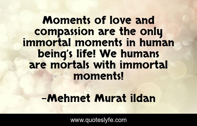 This page presents the quote "Moments of love and compassion are the only immortal moments in human being’s life! We humans are mortals with immortal moments!". Author of this quote is Mehmet Murat ildan. This quote is about love, love-and-sayings, ildan-wise-sayings, immortal-moments, compassion, human-beings, turkish, turkish-playwrights, love-and-saying,.