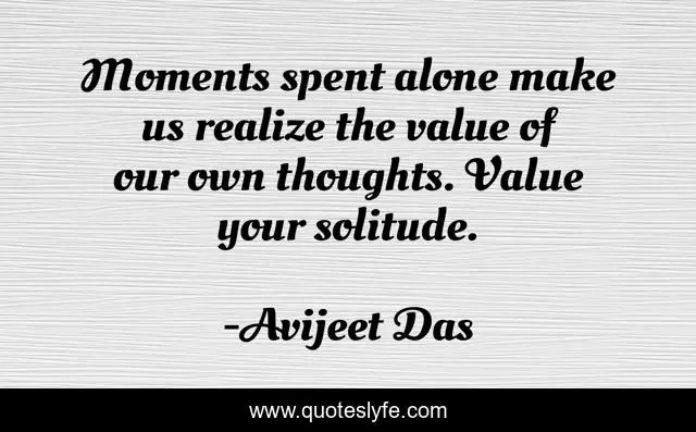 This page presents the quote "Moments spent alone make us realize the value of our own thoughts. Value your solitude.". Author of this quote is Avijeet Das. This quote is about solitude, silence, thoughts,.