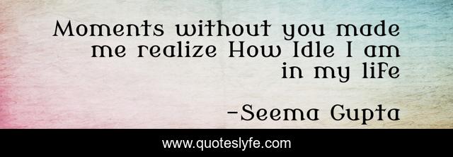 This page presents the quote "Moments without you made me realize How Idle I am in my life". Author of this quote is Seema Gupta. This quote is about broken-heart, life, lonely, love, divine-love, heartbreak, passion, deep-love, inspirational,.