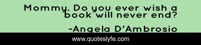 This page presents the quote "Mommy. Do you ever wish a book will never end?". Author of this quote is Angela D'Ambrosio. This quote is about book-lover, kids, love-of-reading,.