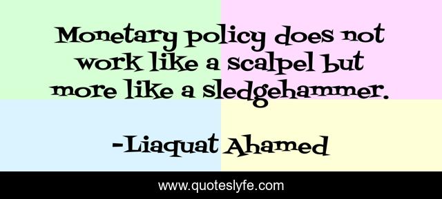 This page presents the quote "Monetary policy does not work like a scalpel but more like a sledgehammer.". Author of this quote is Liaquat Ahamed. This quote is about banking, central-bank, fed, finance,.