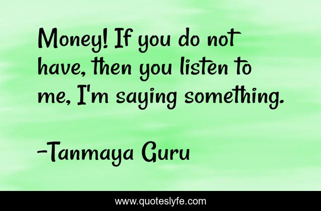 This page presents the quote "Money! If you do not have, then you listen to me, I'm saying something.". Author of this quote is Tanmaya Guru. .