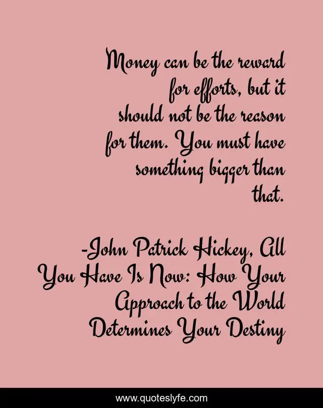 "John Patrick Hickey, All You Have Is Now: How Your Approach to the World Determines Your Destiny Quotes." Quoteslyfe.com, 2025. Fri. 05 Dec. 2025. <https://www.quoteslyfe.com/quote/Money-can-be-the-reward-for-efforts-140763>.