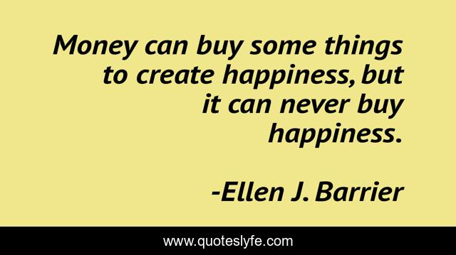 This page presents the quote "Money can buy some things to create happiness, but it can never buy happiness.". Author of this quote is Ellen J. Barrier. This quote is about purchase, buy, wealth, money, riches, happiness, achievement,.