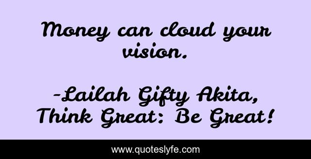 "Lailah Gifty Akita, Think Great: Be Great! Quotes." Quoteslyfe.com, 2025. Fri. 05 Dec. 2025. <https://www.quoteslyfe.com/quote/Money-can-cloud-your-vision-80483>.