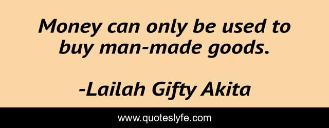 This page presents the quote "Money can only be used to buy man-made goods.". Author of this quote is Lailah Gifty Akita. This quote is about wise-words, goods, money, economics, buy, inspirational, enthusiasm, man-made,.