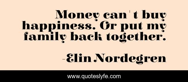 This page presents the quote "Money can't buy happiness. Or put my family back together.". Author of this quote is Elin Nordegren. This quote is about money, family, together,.
