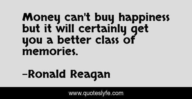 This page presents the quote "Money can't buy happiness but it will certainly get you a better class of memories.". Author of this quote is Ronald Reagan. .
