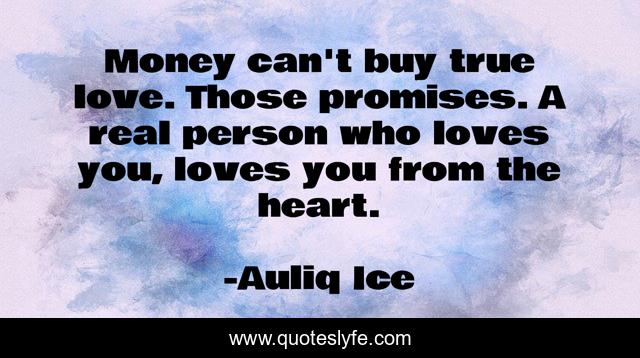 This page presents the quote "Money can't buy true love. Those promises. A real person who loves you, loves you from the heart.". Author of this quote is Auliq Ice. This quote is about romance, true-love, love, affection,.