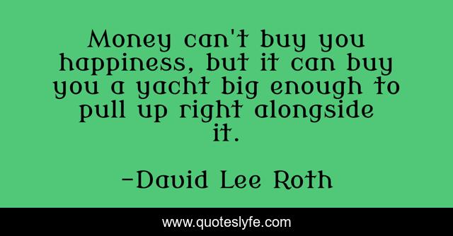 This page presents the quote "Money can't buy you happiness, but it can buy you a yacht big enough to pull up right alongside it.". Author of this quote is David Lee Roth. This quote is about money, right,.