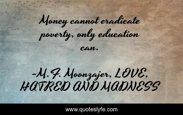 "M.F. Moonzajer, LOVE, HATRED AND MADNESS Quotes." Quoteslyfe.com, 2025. Mon. 08 Dec. 2025. <https://www.quoteslyfe.com/quote/Money-cannot-eradicate-poverty-only-education-can-34591>.
